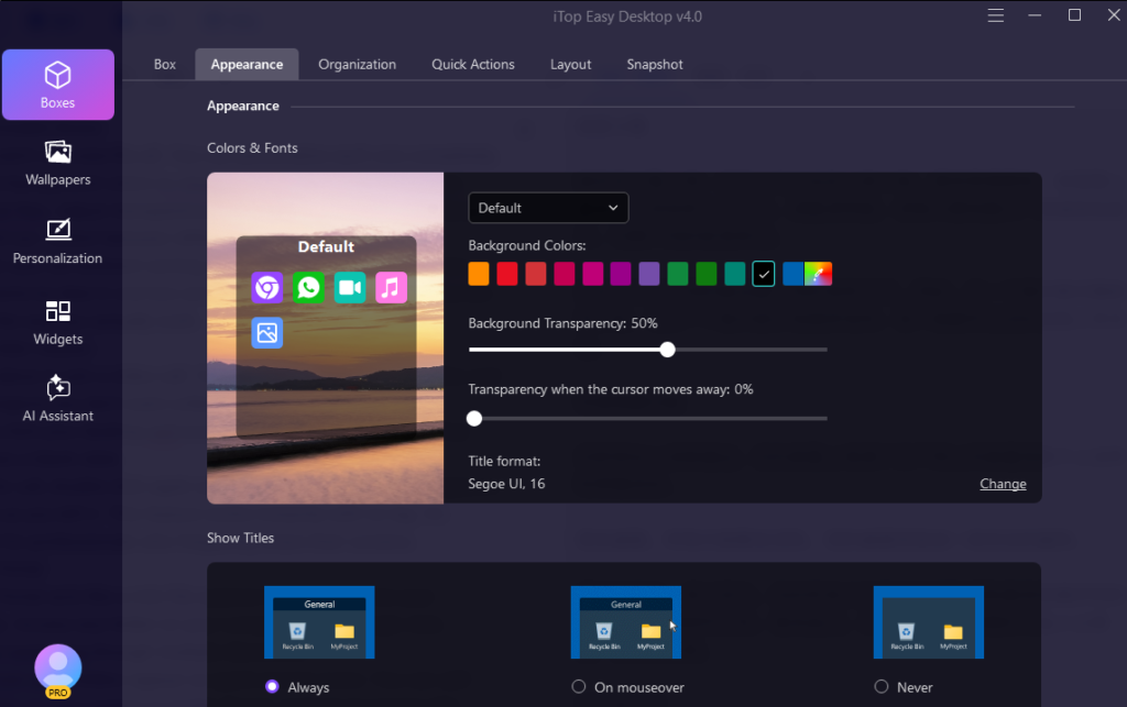A nice wallpaper makes your desktop more pleasant all day. iTop Easy Desktop includes a library of stunning, dynamic 2000+ wallpapers that actually move and change.